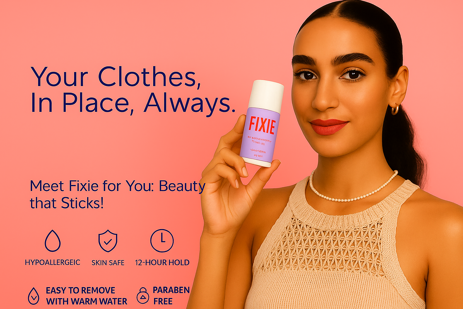 FIXIEΒ has been designed to not only bond to your skin as long as you need it to, but wash right off all your favourite clothes when youβre done.