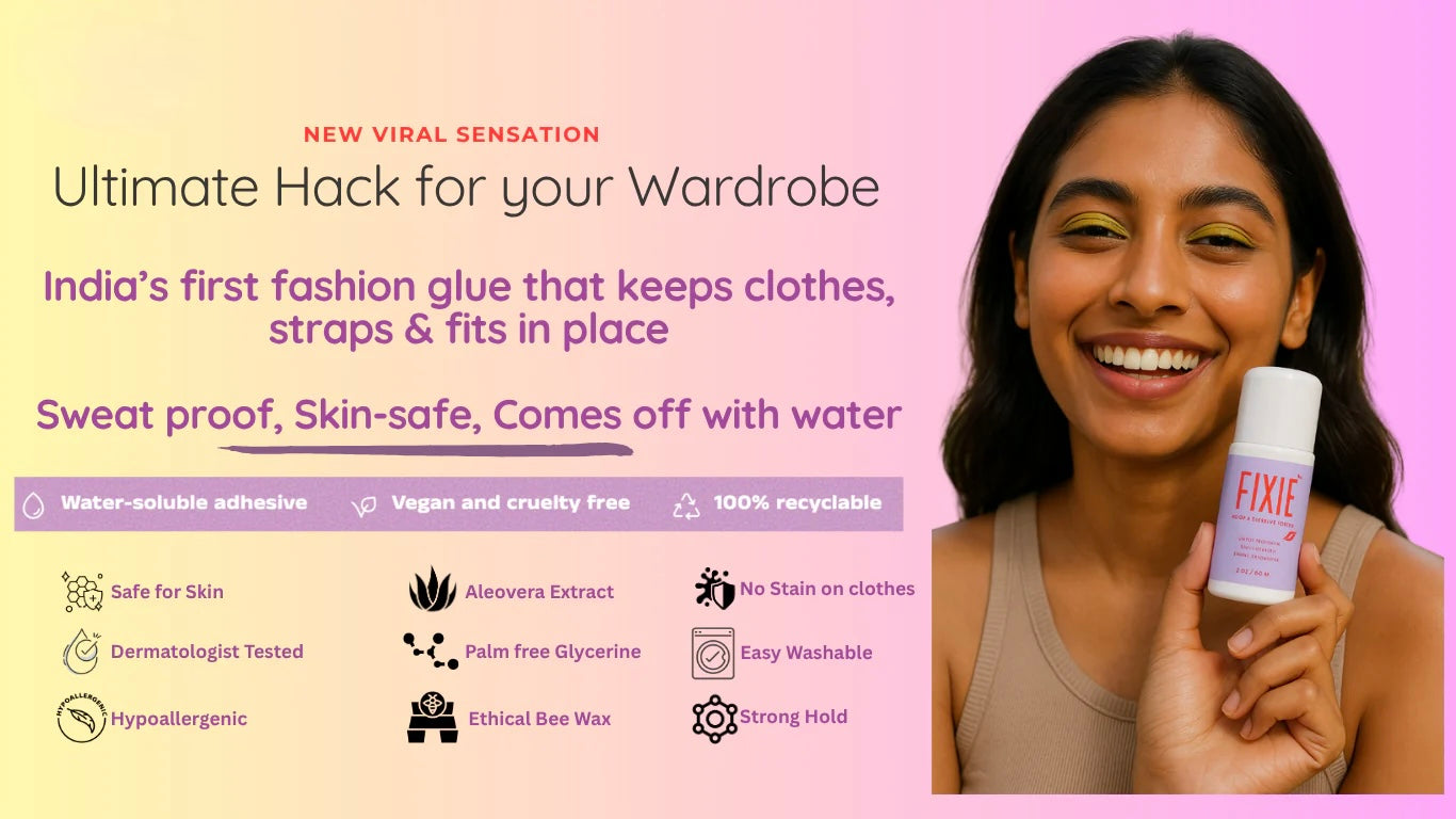The body adhesive that adjusts your outfit to your body β no slips, no stress. Whether you're wearing off-shoulders, sarees, or slitted dresses, Fixie Body Adhesive Roller keeps everything comfortably in place, all day long.